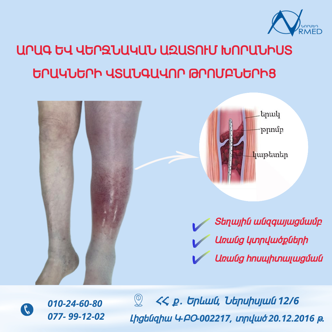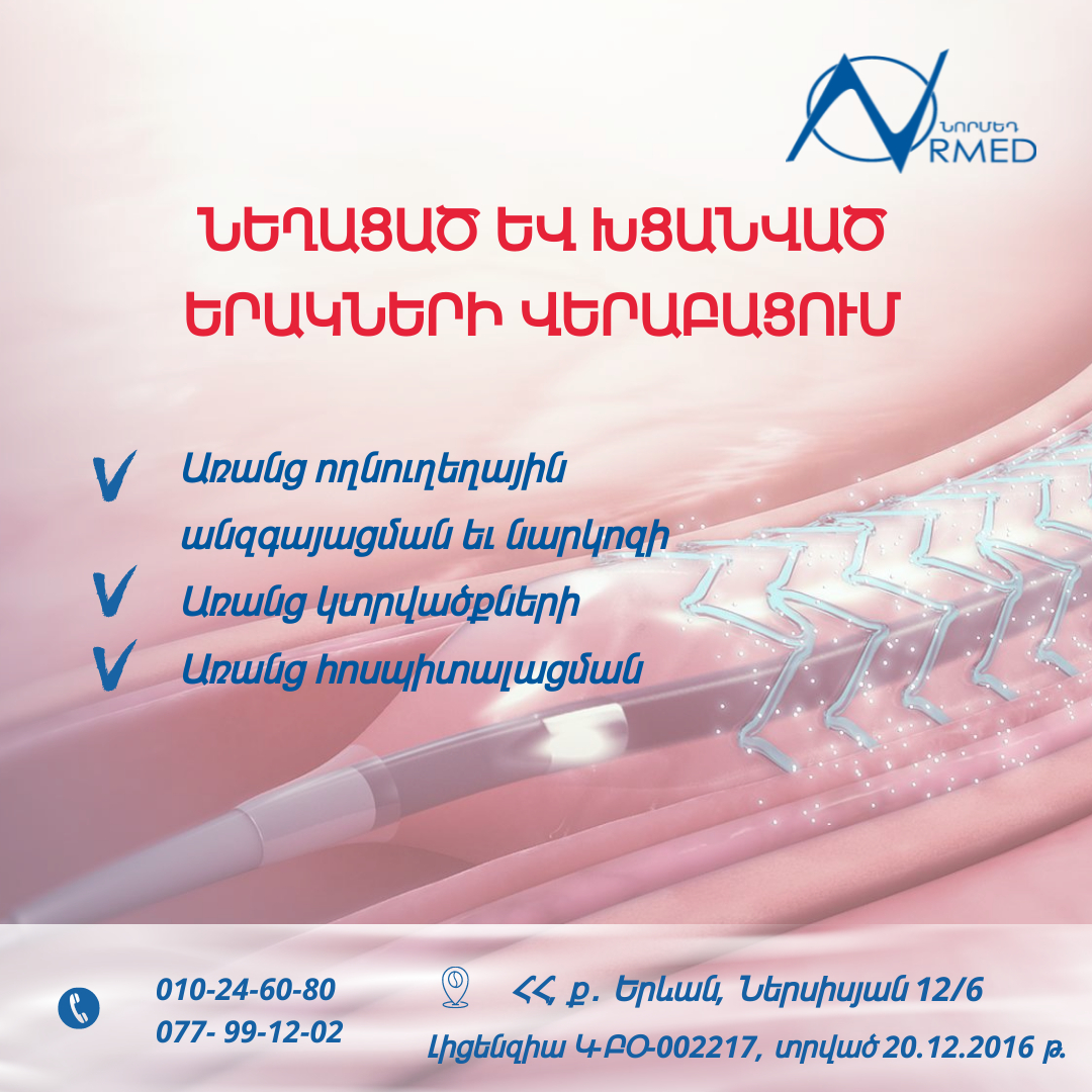 «Նորմեդ» բժշկական կենտրոնում իրականացվում են մակերեսային և խորանիստ երակների բոլոր պաթոլոգիաների ախտորոշում և բուժում՝ միջազգային արդի ուղեցույցներին համապատասխան: